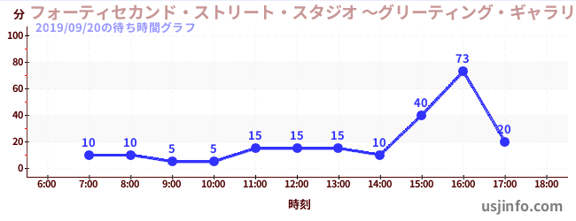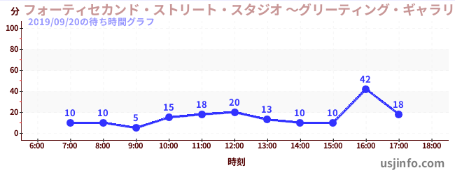 • フォーティセカンド・ストリート・スタジオ ~グリーティング・ギャラリー~ ピーナッツの仲間たち$B$N(B2019年09月20日の待ち時間