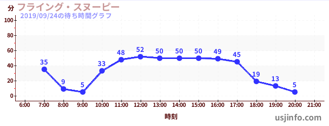 • フライング・スヌーピー$B$N(B2019年09月24日の待ち時間