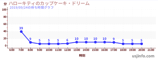 • ハローキティのカップケーキ・ドリーム$B$N(B2019年09月24日の待ち時間