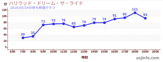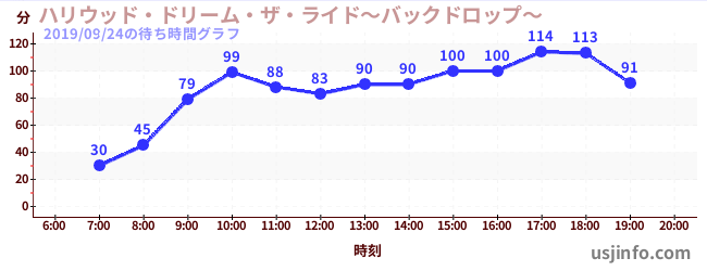 • ハリウッド・ドリーム・ザ・ライド$B$N(B2019年09月24日の待ち時間