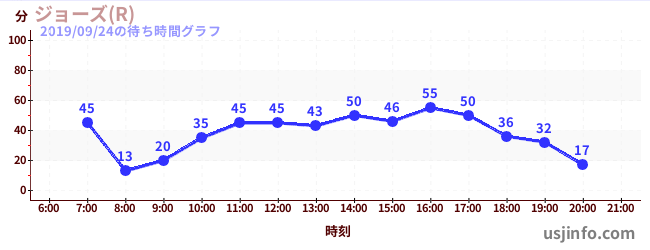 • ジョーズ(R)$B$N(B2019年09月24日の待ち時間