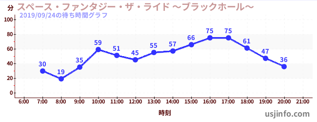 • スペース・ファンタジー・ザ・ライド ~ブラックホール~$B$N(B2019年09月24日の待ち時間