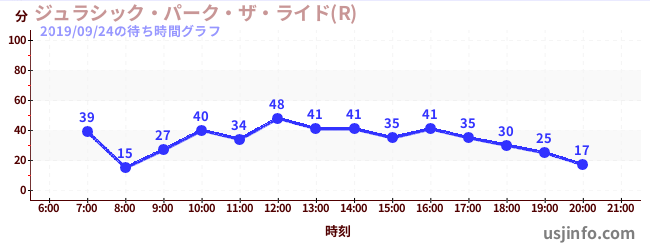 • ジュラシック・パーク・ザ・ライド(R)$B$N(B2019年09月24日の待ち時間