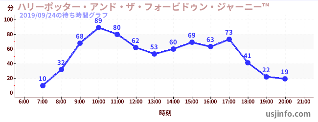 • ハリーポッター・アンド・ザ・フォービドゥン・ジャーニー™$B$N(B2019年09月24日の待ち時間