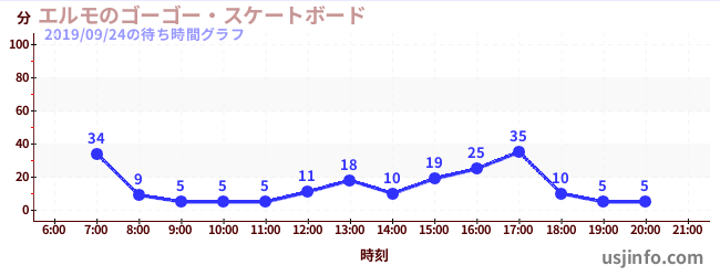 • エルモのゴーゴー・スケートボード$B$N(B2019年09月24日の待ち時間