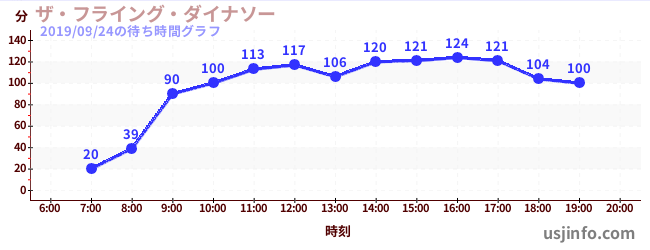 • ザ・フライング・ダイナソー$B$N(B2019年09月24日の待ち時間