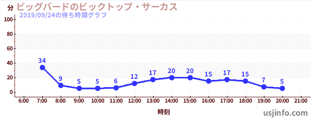 • ビッグバードのビックトップ・サーカス$B$N(B2019年09月24日の待ち時間