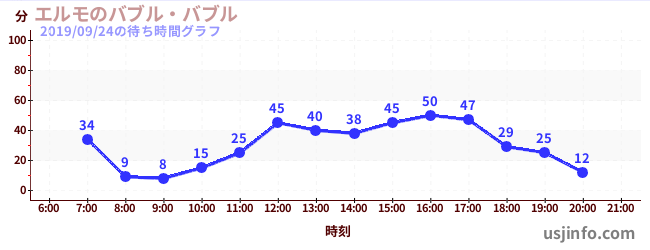 • エルモのバブル・バブル$B$N(B2019年09月24日の待ち時間