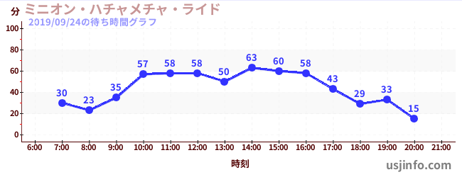 • ミニオン・ハチャメチャ・ライド$B$N(B2019年09月24日の待ち時間