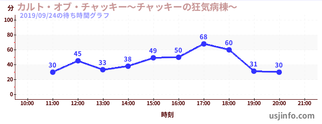 • カルト・オブ・チャッキー~チャッキーの狂気病棟~$B$N(B2019年09月24日の待ち時間