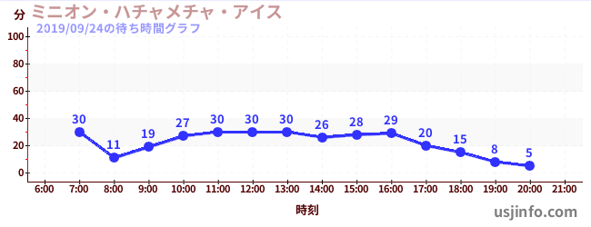 • ミニオン・ハチャメチャ・アイス$B$N(B2019年09月24日の待ち時間