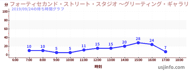 • フォーティセカンド・ストリート・スタジオ ~グリーティング・ギャラリー~ ピーナッツの仲間たち$B$N(B2019年09月24日の待ち時間