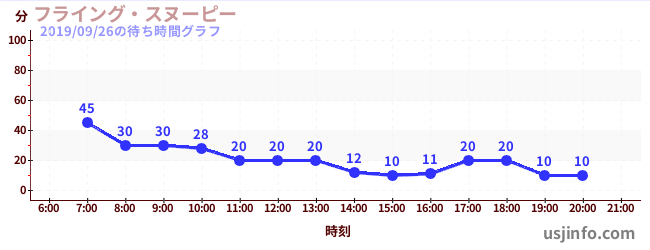 • フライング・スヌーピー$B$N(B2019年09月26日の待ち時間