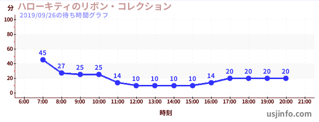 • ハローキティのリボン・コレクション$B$N(B2019年09月26日の待ち時間