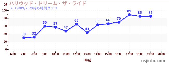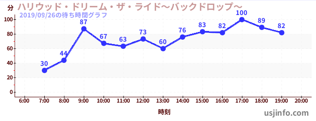 • ハリウッド・ドリーム・ザ・ライド$B$N(B2019年09月26日の待ち時間