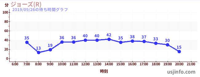 • ジョーズ(R)$B$N(B2019年09月26日の待ち時間