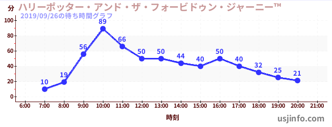 • ハリーポッター・アンド・ザ・フォービドゥン・ジャーニー™$B$N(B2019年09月26日の待ち時間