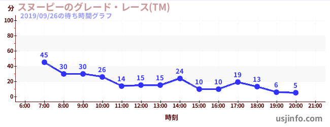• スヌーピーのグレード・レース(TM)$B$N(B2019年09月26日の待ち時間