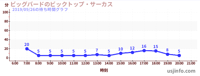 • ビッグバードのビックトップ・サーカス$B$N(B2019年09月26日の待ち時間