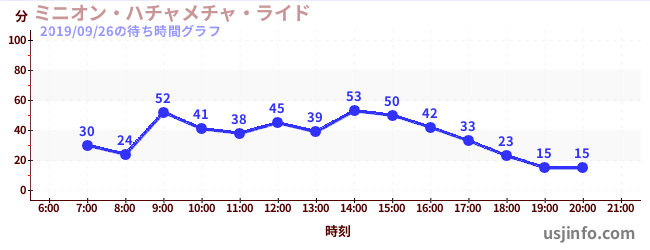 • ミニオン・ハチャメチャ・ライド$B$N(B2019年09月26日の待ち時間