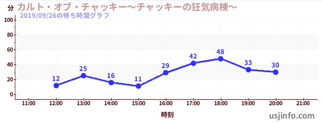 • カルト・オブ・チャッキー~チャッキーの狂気病棟~$B$N(B2019年09月26日の待ち時間
