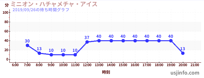 • ミニオン・ハチャメチャ・アイス$B$N(B2019年09月26日の待ち時間