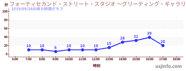 • フォーティセカンド・ストリート・スタジオ ~グリーティング・ギャラリー~ ピーナッツの仲間たち$B$N(B2019年09月26日の待ち時間