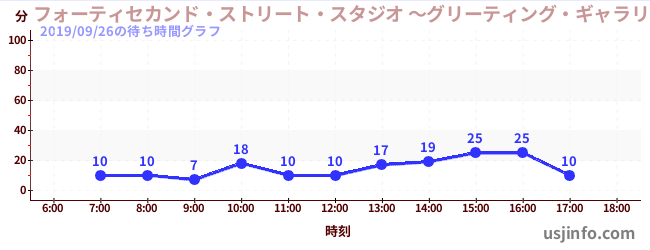 • フォーティセカンド・ストリート・スタジオ ~グリーティング・ギャラリー~ ミニオン$B$N(B2019年09月26日の待ち時間