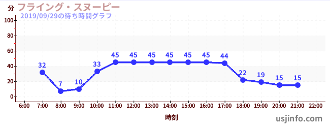 • フライング・スヌーピー$B$N(B2019年09月29日の待ち時間