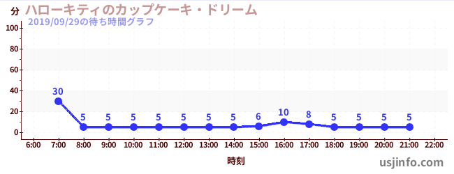 • ハローキティのカップケーキ・ドリーム$B$N(B2019年09月29日の待ち時間