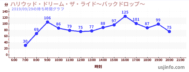• ハリウッド・ドリーム・ザ・ライド〜バックドロップ〜$B$N(B2019年09月29日の待ち時間