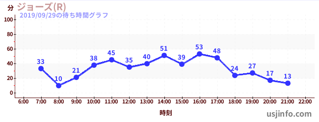 • ジョーズ(R)$B$N(B2019年09月29日の待ち時間