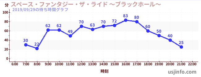 • スペース・ファンタジー・ザ・ライド ~ブラックホール~$B$N(B2019年09月29日の待ち時間