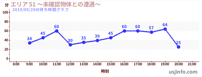 • エリア 51 ~未確認物体との遭遇~$B$N(B2019年09月29日の待ち時間