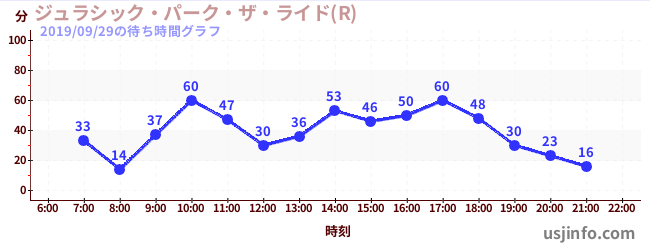 • ジュラシック・パーク・ザ・ライド(R)$B$N(B2019年09月29日の待ち時間