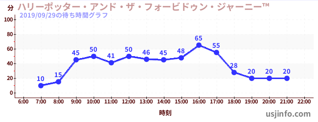 • ハリーポッター・アンド・ザ・フォービドゥン・ジャーニー™$B$N(B2019年09月29日の待ち時間