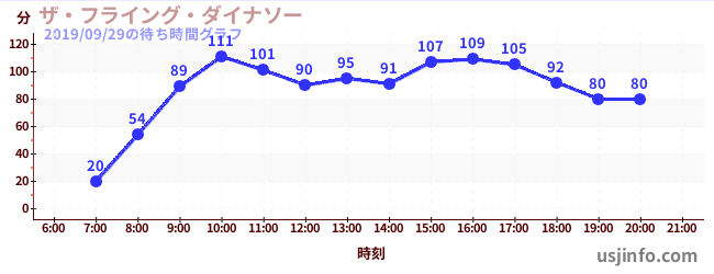 • ザ・フライング・ダイナソー$B$N(B2019年09月29日の待ち時間