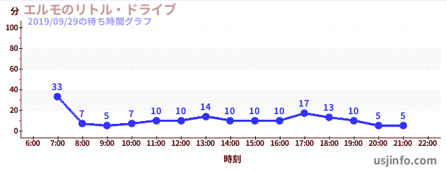 • エルモのリトル・ドライブ$B$N(B2019年09月29日の待ち時間