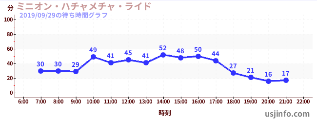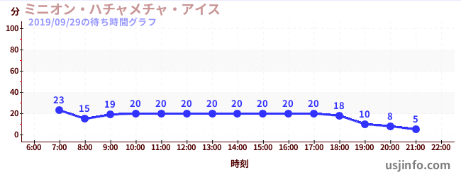 • ミニオン・ハチャメチャ・ライド$B$N(B2019年09月29日の待ち時間