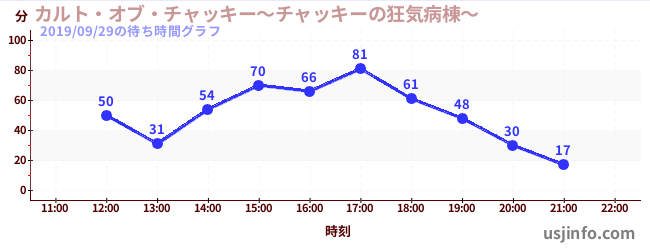 • カルト・オブ・チャッキー~チャッキーの狂気病棟~$B$N(B2019年09月29日の待ち時間