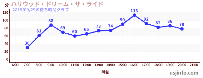 • ハリウッド・ドリーム・ザ・ライド$B$N(B2019年09月29日の待ち時間