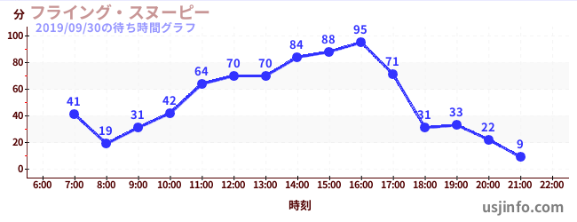 • フライング・スヌーピー$B$N(B2019年09月30日の待ち時間