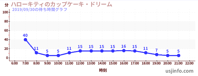 • ハローキティのカップケーキ・ドリーム$B$N(B2019年09月30日の待ち時間