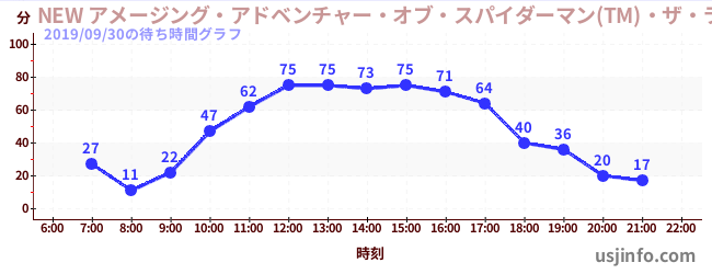 • NEW アメージング・アドベンチャー・オブ・スパイダーマン(TM)・ザ・ライド 4K3D$B$N(B2019年09月30日の待ち時間