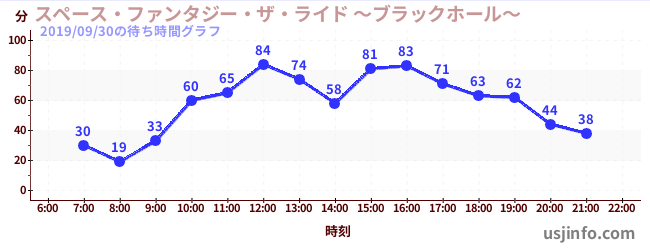 • スペース・ファンタジー・ザ・ライド ~ブラックホール~$B$N(B2019年09月30日の待ち時間