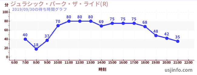 • ジュラシック・パーク・ザ・ライド(R)$B$N(B2019年09月30日の待ち時間
