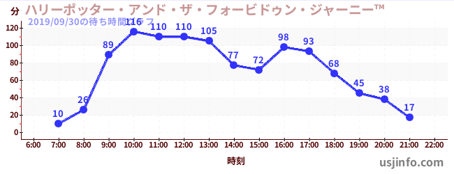 • ハリーポッター・アンド・ザ・フォービドゥン・ジャーニー™$B$N(B2019年09月30日の待ち時間
