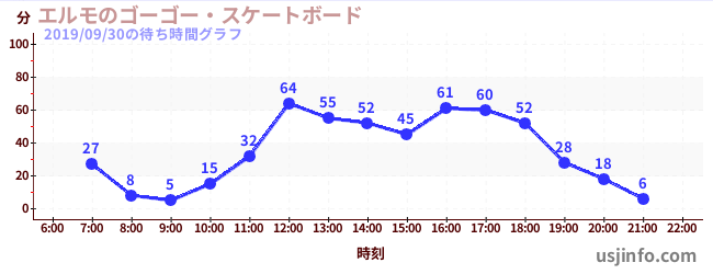 • エルモのゴーゴー・スケートボード$B$N(B2019年09月30日の待ち時間