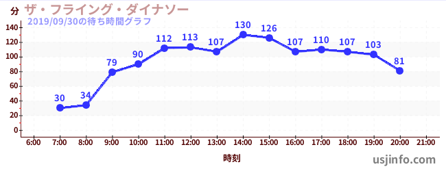 • ザ・フライング・ダイナソー$B$N(B2019年09月30日の待ち時間