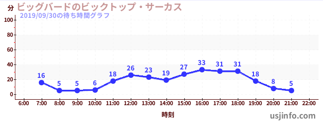 • ビッグバードのビックトップ・サーカス$B$N(B2019年09月30日の待ち時間